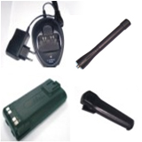 Repuestos para radios de comunicaciones como antenas, baterías, cargadores, etc.